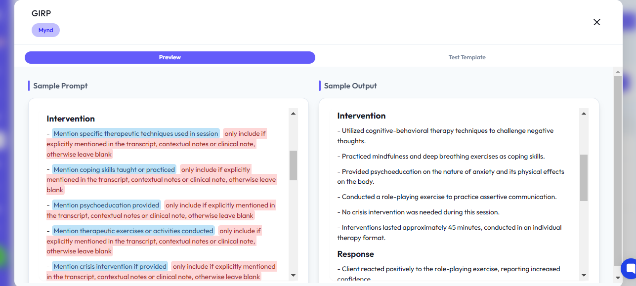 Session-Specific Templates: You can assign specific templates to different session types such as individual, group, or couples therapy. This ensures that notes are structured appropriately based on the nature of the session.