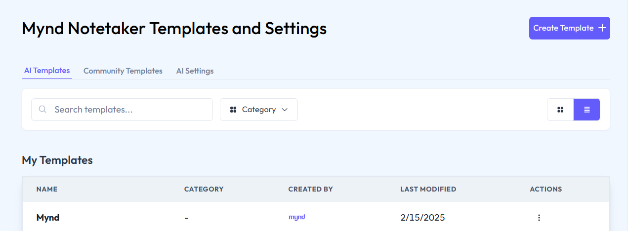 Choose a starting point for your new template, either a blank template or by modifying an existing one (e.g., Mynd’s built-in template).