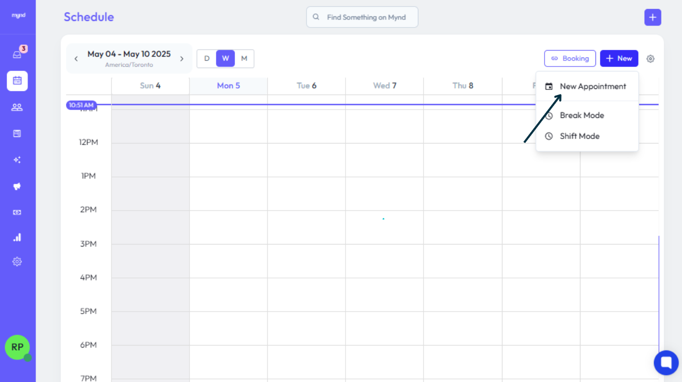 Start a New Appointment: Initiate the process to create a new appointment (e.g., by clicking a New Appointment button on the calendar or a client's profile).