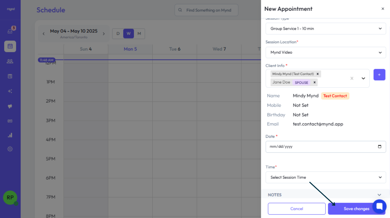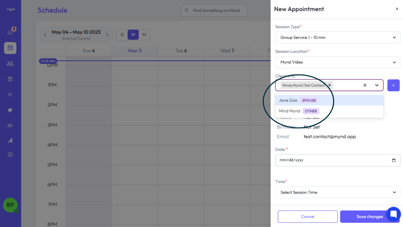 This guide explains how practitioners can schedule an appointment involving multiple clients (a group appointment) directly within the Mynd platform.